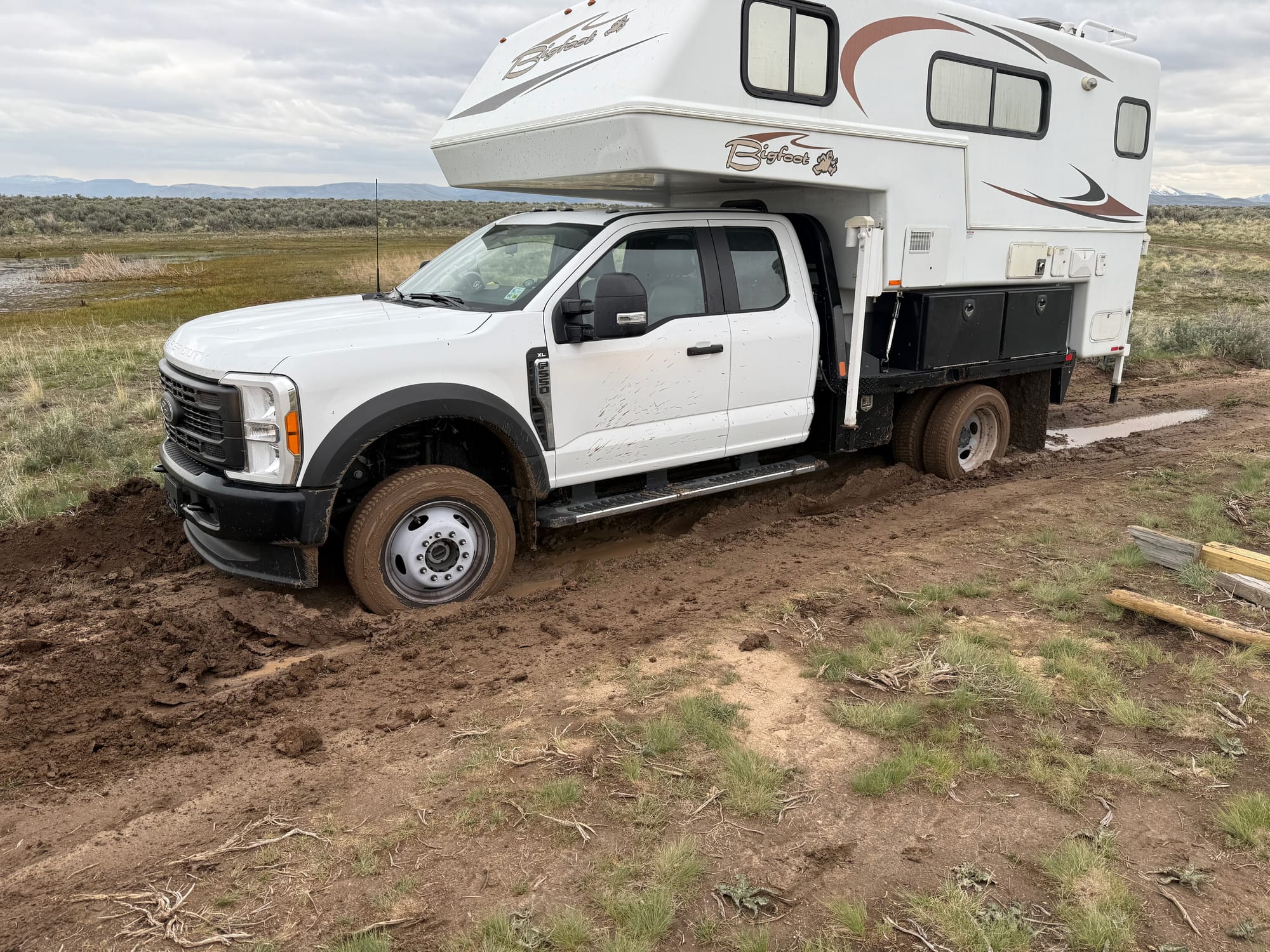 Rod continued on to our campsite. Parked. Unhooked his trailer then doubled-back with a tow strap. Looking at the Ford 150 rescue vehicle, the tow strap and the Ford 550 mired almost chasis-deep and it looked like a world-class shit-show, one that didn't seem likely to end on a good note.