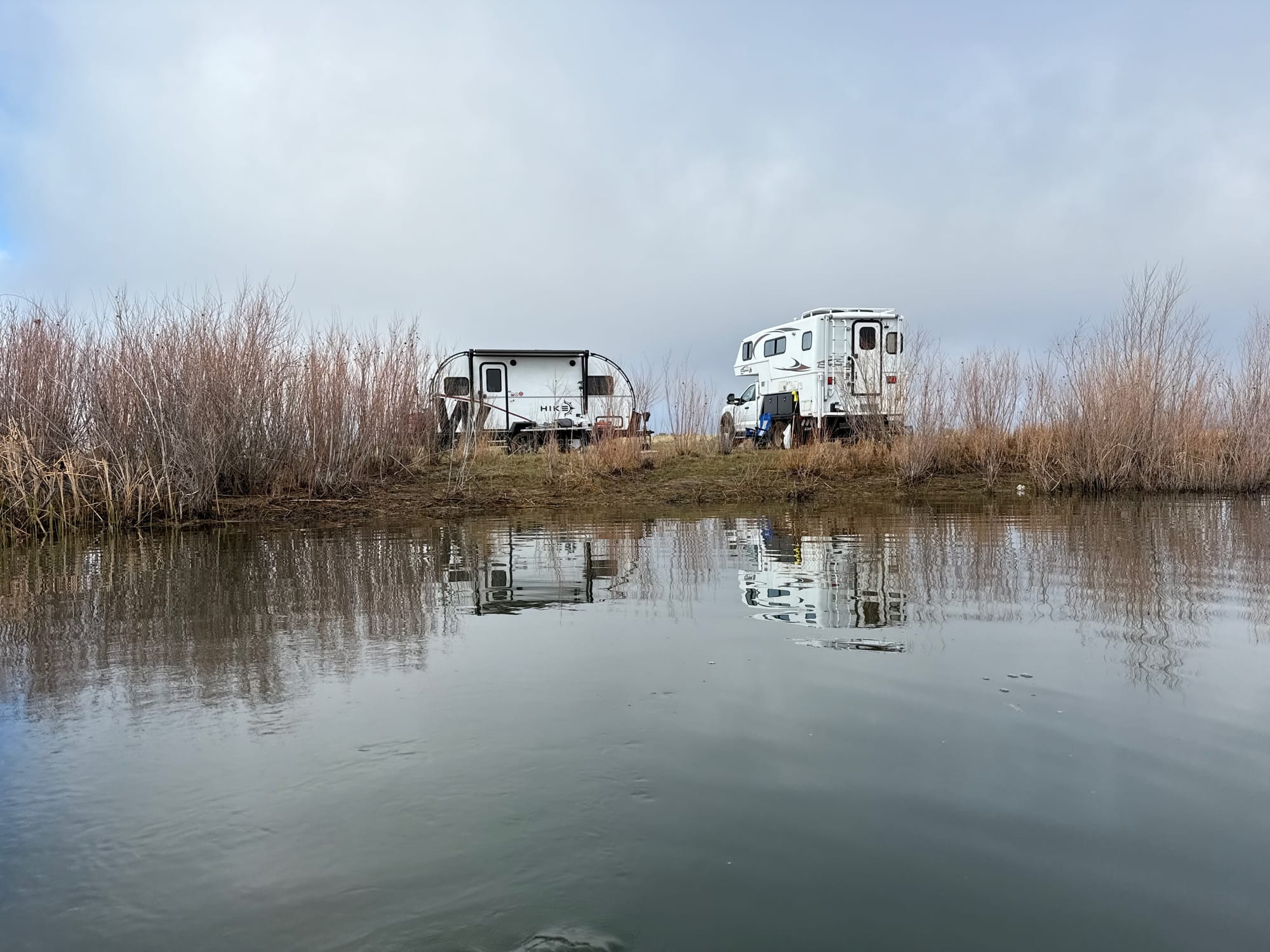 That sounded promising. We headed out, met Jim at a gas station along the route and eventually turned off the pavement to find a lakeside campsite. We found one – but not till after Jim buried his Ford 550 – yes 550, like 2.5 tons - in a pool of wet, sticky, deep clay.