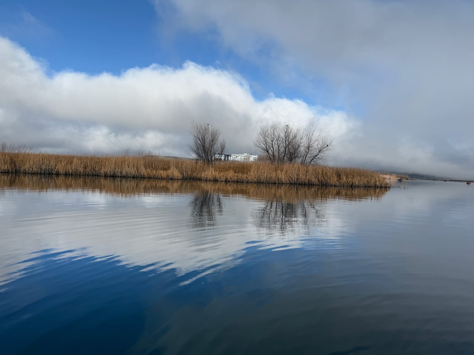 Settled in camp. We pumped up the float tubes, put on our rain gear and tried to get the fishing off on a good foot. We didn't. As the sun started to settle behind the desert butte to the west, we returned to camp, made dinner and sat around a soggy campfire, hoping for the clouds to clear.
