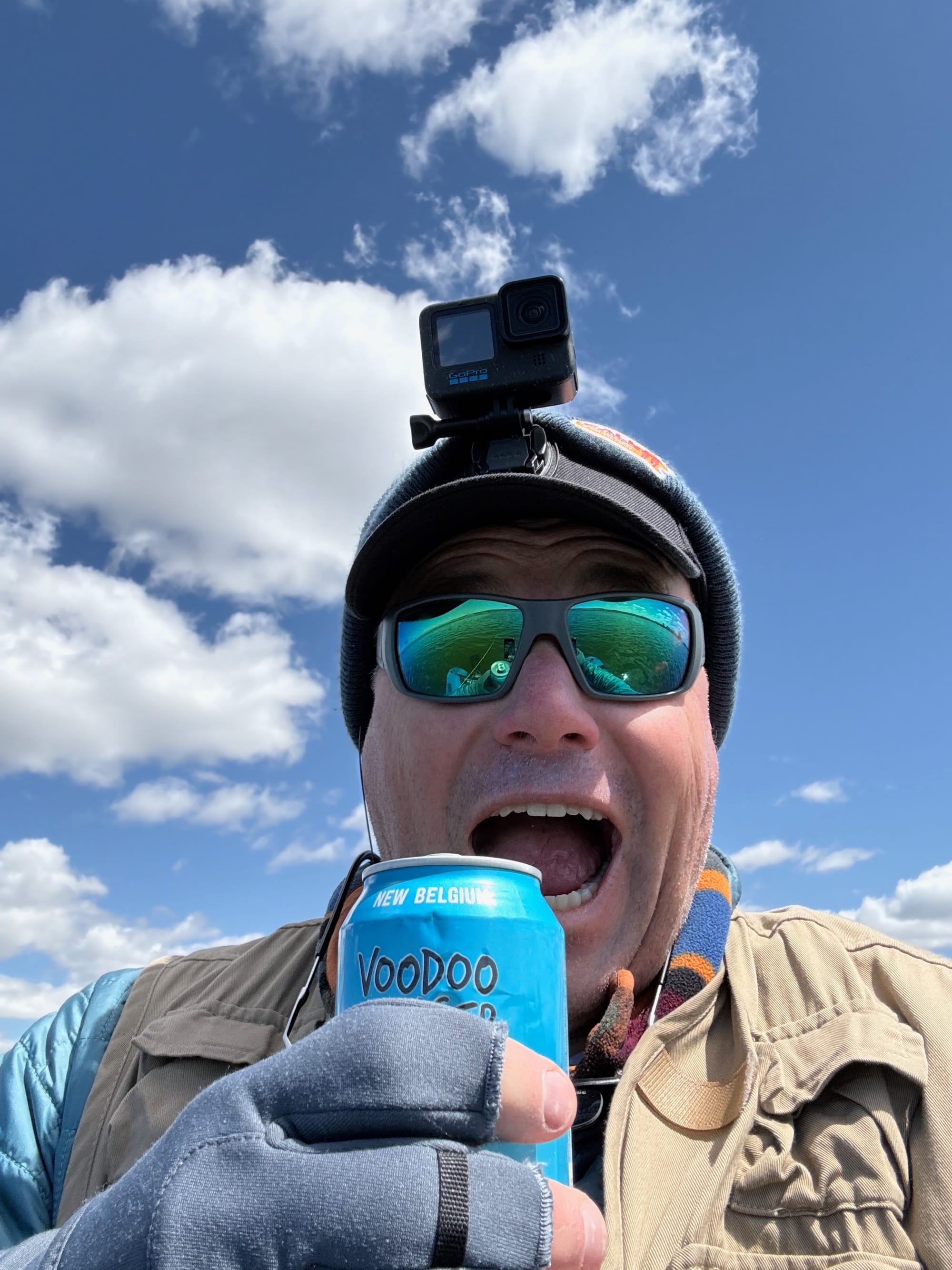 The next day dawned clear and beautiful. After a quick powwow on techniques, we hit the water. It didn't take long. Rod hooked up with a beautiful rainbow and quickly got into another one. But then, the bite just stopped. It got so bad, I returned to camp, grabbed a couple Coors Silver Bullets and returned to the water. I found myself drifting with the wind, indicator bobbing along, listening to podcasts and sipping beer. It wasn't the most aggressive fishing I've ever done, but it was relaxing.