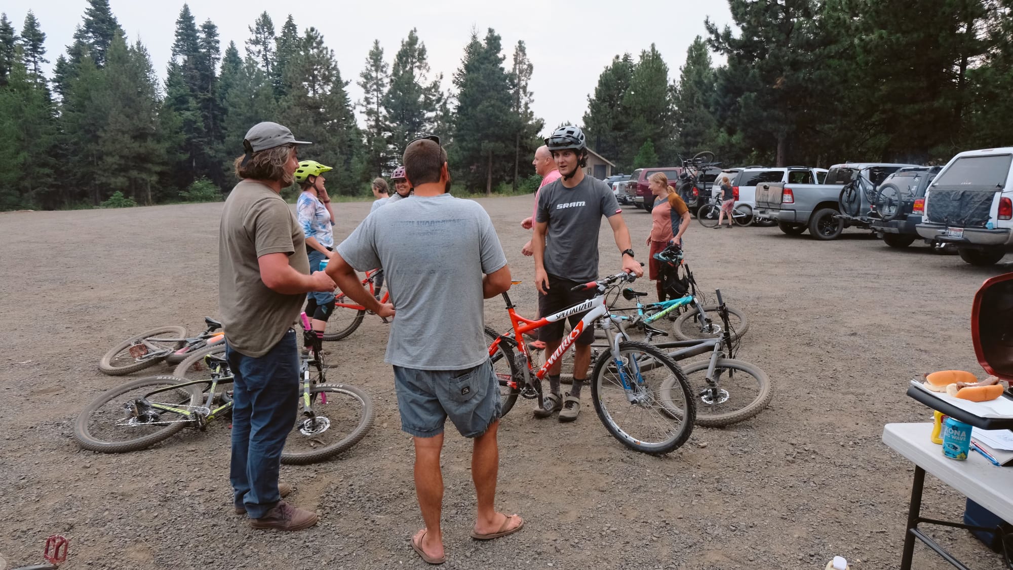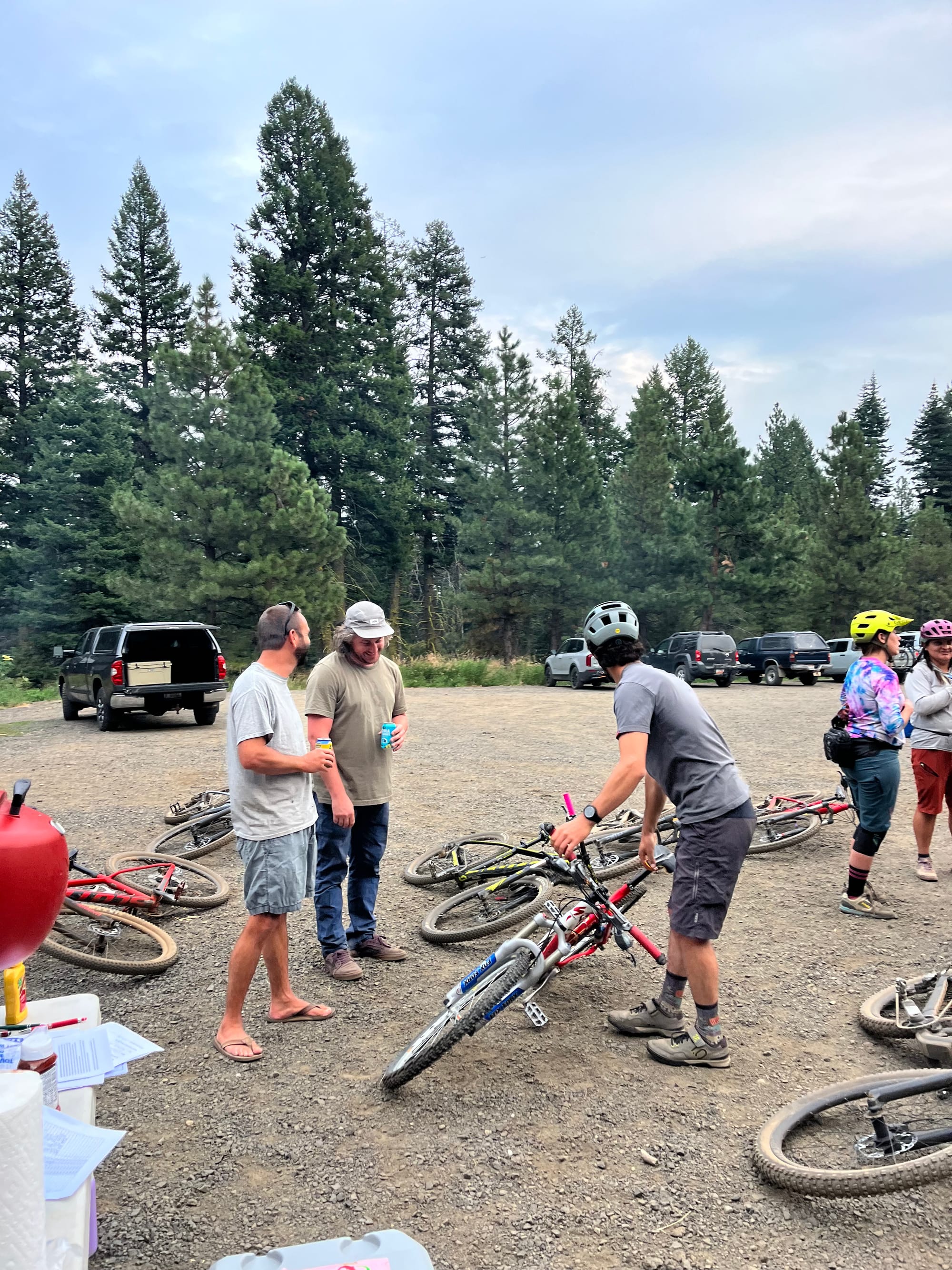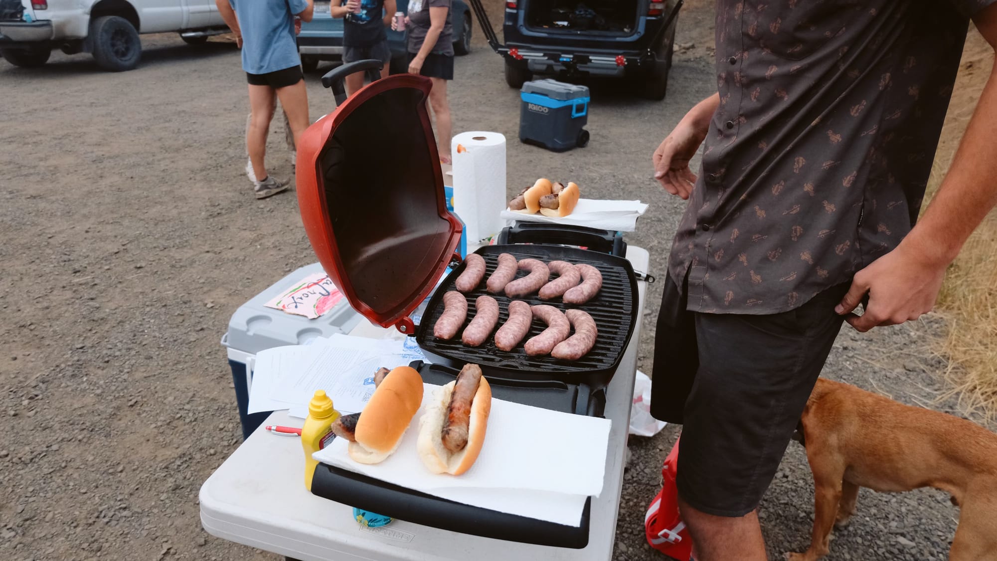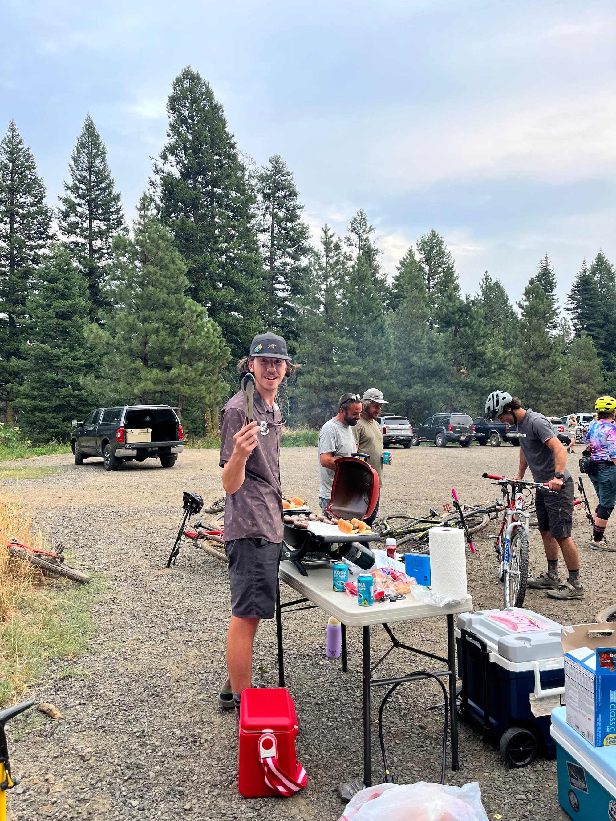 The brats we bought for the July group ride finally made it out of the freezer and onto the grill at Bear Basin after a fun spin through the woods with new friends.